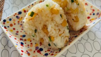 カルディのあげ玉 柚子こしょう味でたぬきおにぎり