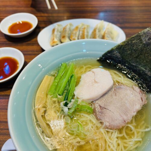私は塩ラーメンと餃子で母は味噌ラーメンをいただきました。