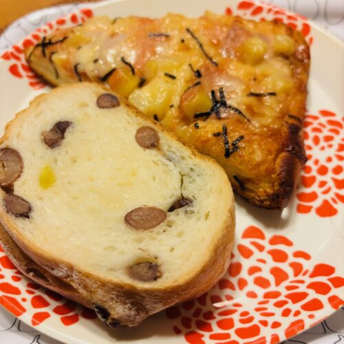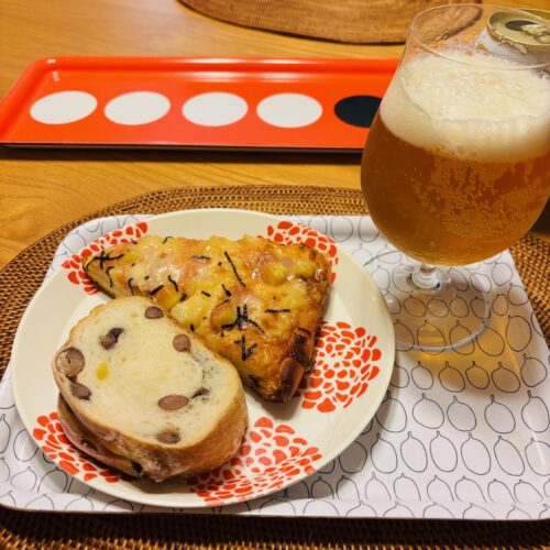 明太子のピザと前回とても美味しくて気に入った豆のパン