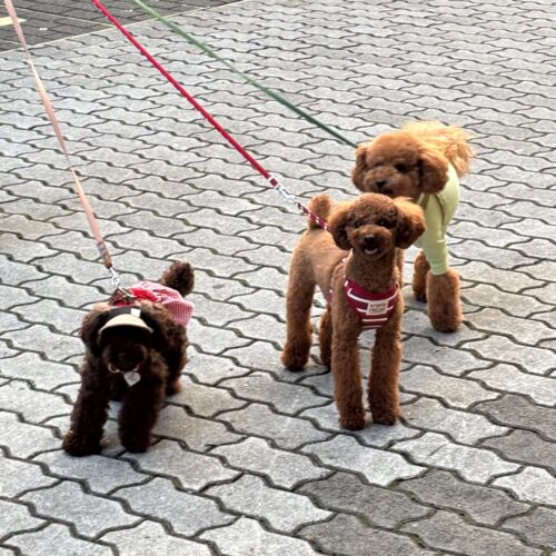 あー飲んだ飲んだ、食べた食べたの飼い主達がやっと立ち上がったのでお散歩しながら帰りました〜