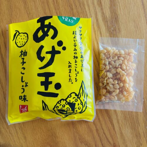 小袋だからあげ玉も新鮮でサクサクだし、柚子こしょうの辛味がピリッとしてとても良いです。