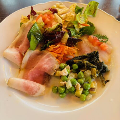 こちらのランチは昨今の物価高で値上がりしたんですが、その代わり前菜が豪華になった気がします。