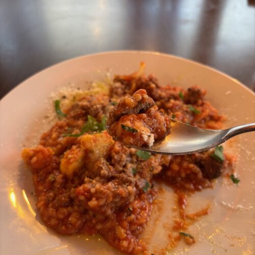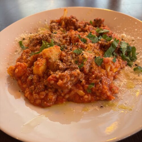 このお店のリゾットが大好きなので私はトマト味のサルシッチャのリゾットにしました。