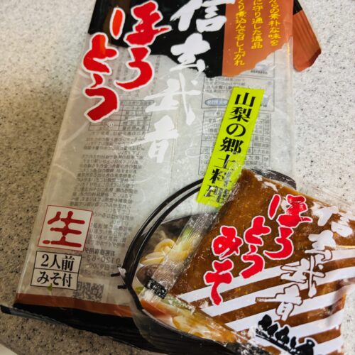 そして山梨のお土産のほうとう、パッケージを開けてしまいました・・