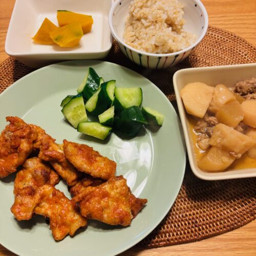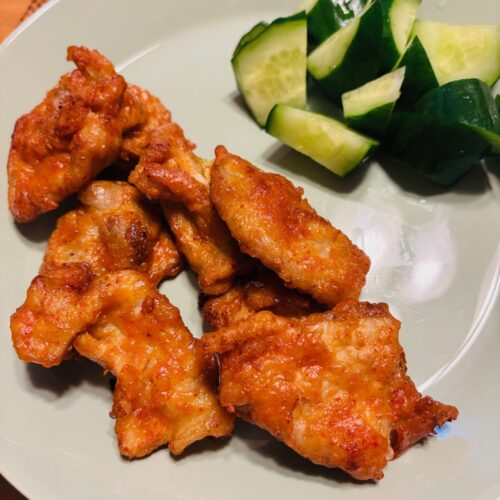 付け合わせはきゅうりを切っただけ!さっぱりとして相性が良かったです。