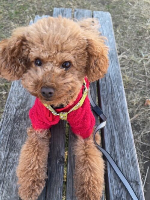 うちでは今年は特にクリスマスはやらないけど、ワンはむすこのところで珍しく赤い服でクリスマスっぽいかな🎄