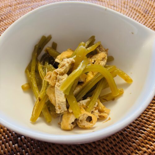 とにかく歯応えがシャリっとしていて良いし、味はなんだか不思議な風味?軽い酸味もあってシンプルな味付けなのにとても美味しいです。