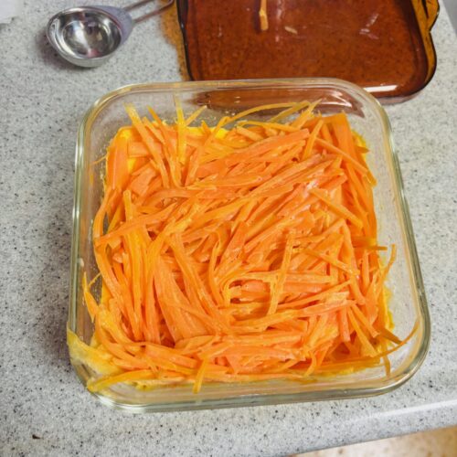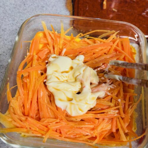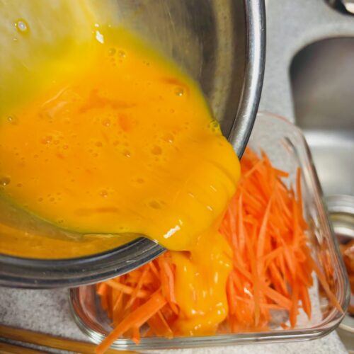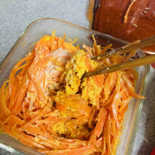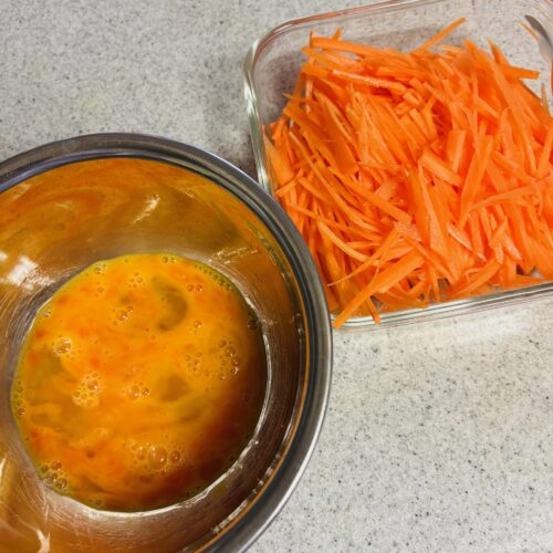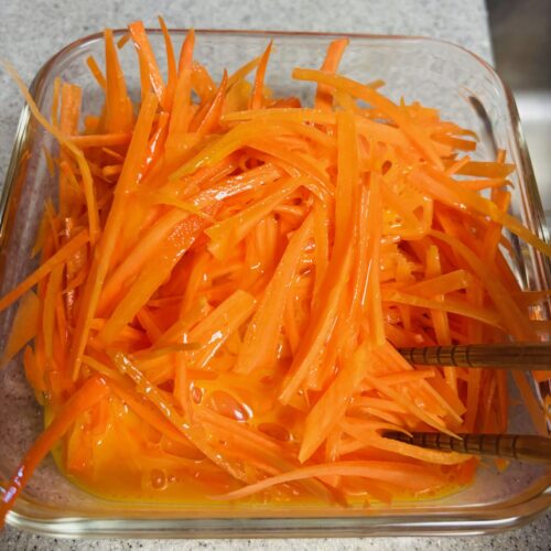 レシピではにんじんをピーラーで薄く削っていましたが、よりシリシリに近づけたくて細めの千切りにしました。