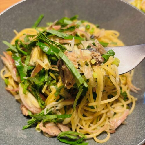 いつも作っているしらすのパスタと同じ作り方ですがサバ缶だとコクが出て美味しかったです。