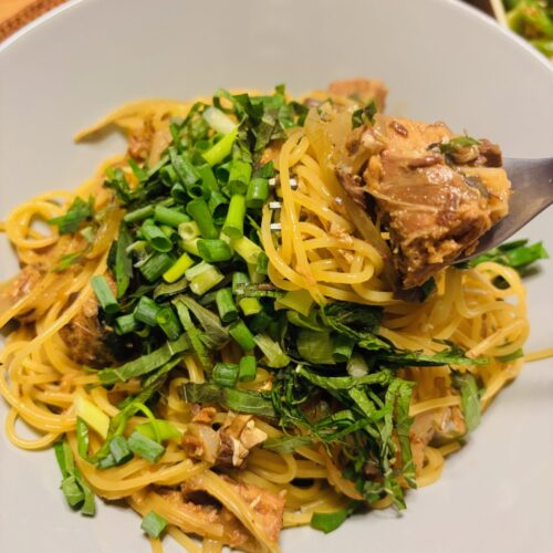味付けはサバの味噌煮と煮汁だけなのにとても美味しい和風パスタになりましたー