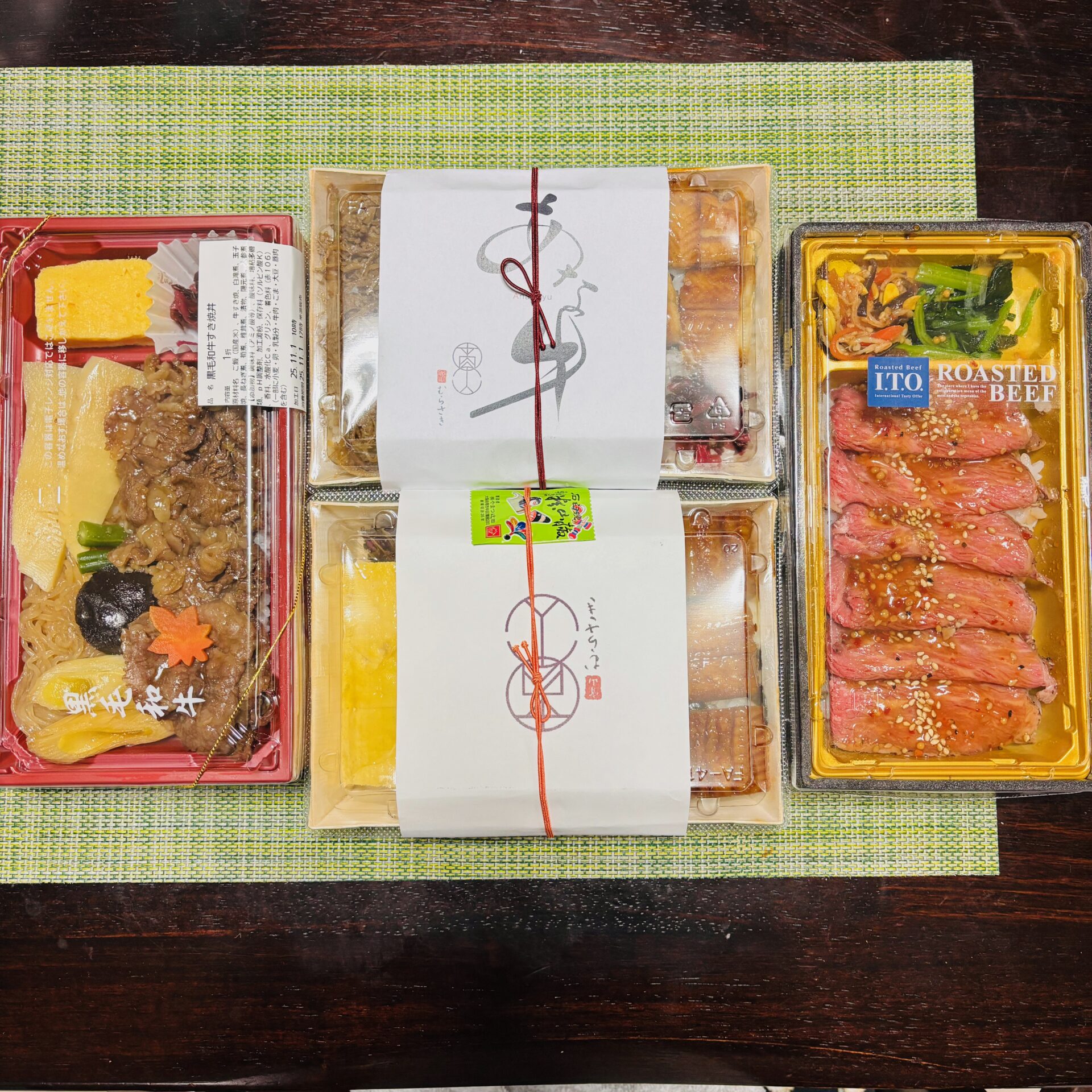 全部違う種類を買って、私は穴子と卵焼きのお弁当にしましたー